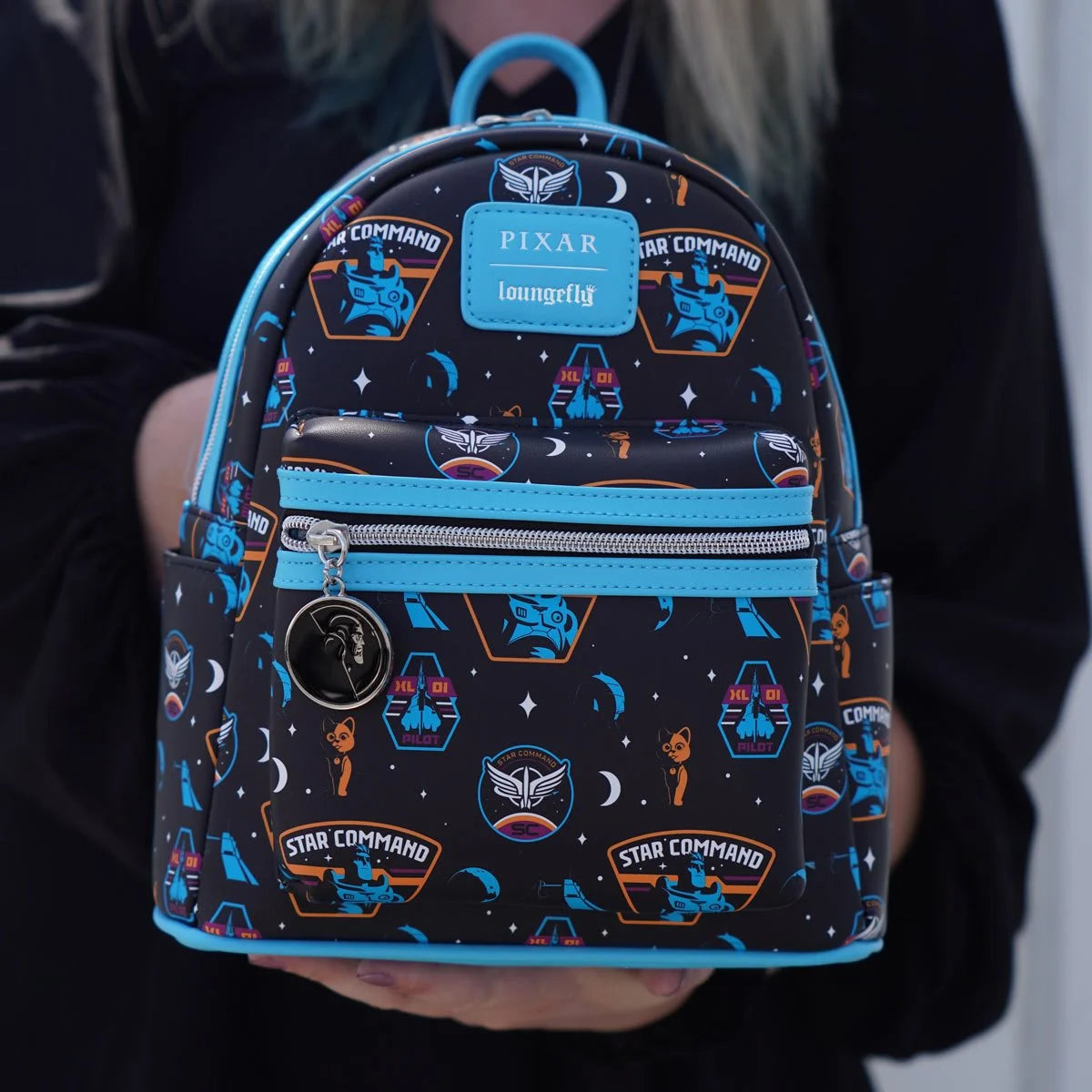 Entertainment Earth Exclusive! Prepare to join Buzz in outer space with our Lightyear Star Command Buzz Lightyear Print Mini-Backpack - Entertainment Earth Exclusive! It's made of faux leather and features top zipper closure and a front zippered pocket, adjustable straps, matching lining, shiny silver hardware, and printed details. The backpack measures about 10 1/2-inches tall x 9-inches wide x 4 1/2-inches deep and makes a stellar gift for fans of the 2022 Disney-Pixar film Lightyear. Grab this limited edition exclusive before it sells out! Ages 15 and up.