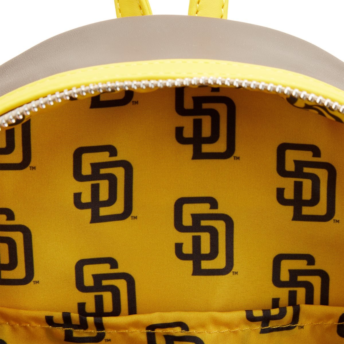 Show off your MLB fandom with this MLB San Diego Padres Patches Mini-Backpack! It is made of faux leather and features a top zipper closure and front zippered pocket, adjustable straps, matching themed lining, applique, embroidered, debossed, enamel zipper charm, and printed details. This mini-backpack approximately measures 9-inches wide x 10-inches tall x 4 1/2-inches deep. This style would be a great gift for any MLB fan! Ages 8 and up.