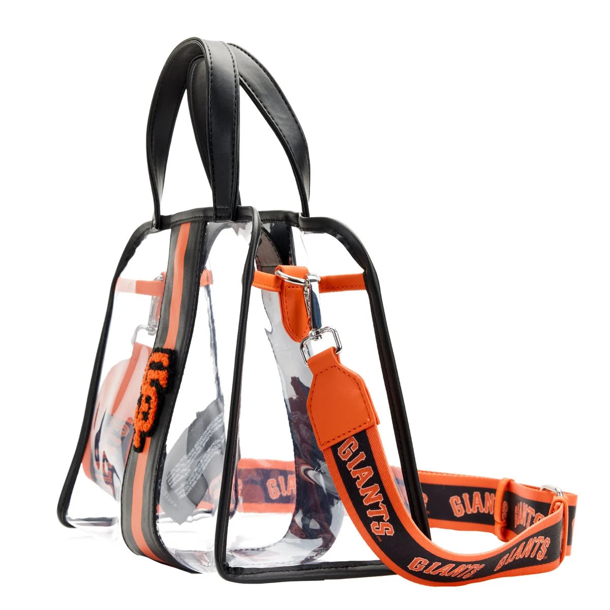 Show off your MLB fandom with this MLB San Francisco Giants Stadium Crossbody Purse! It is made of clear vinyl and features a top zipper closure, adjustable strap, handle, patch, and printed details. It also includes a removable pouch! This crossbody purse approximately measures 10 1/4-inches wide x 8-inches tall x 5-inches deep. This style would be a great gift for any MLB fan! Ages 15 and up.