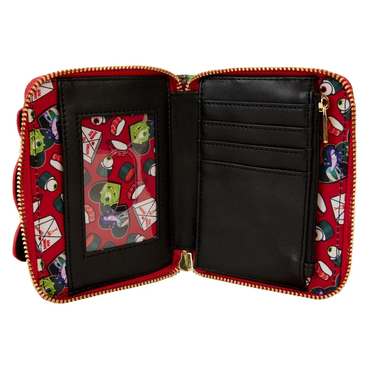 Enjoy a chaotic night out at Harryhausen's with Mike, Sulley and Boo with this Monsters Inc. Boo Takeout Zip-Around Wallet! Features a restaurant themed setting with a takeout box detail that Boo sits inside of during Mike and Celia's romantic date. The faux leather zip-around wallet features applique, debossed and printed details and measures approximately 4-inches tall x 5-inches long. For ages 8 and up.